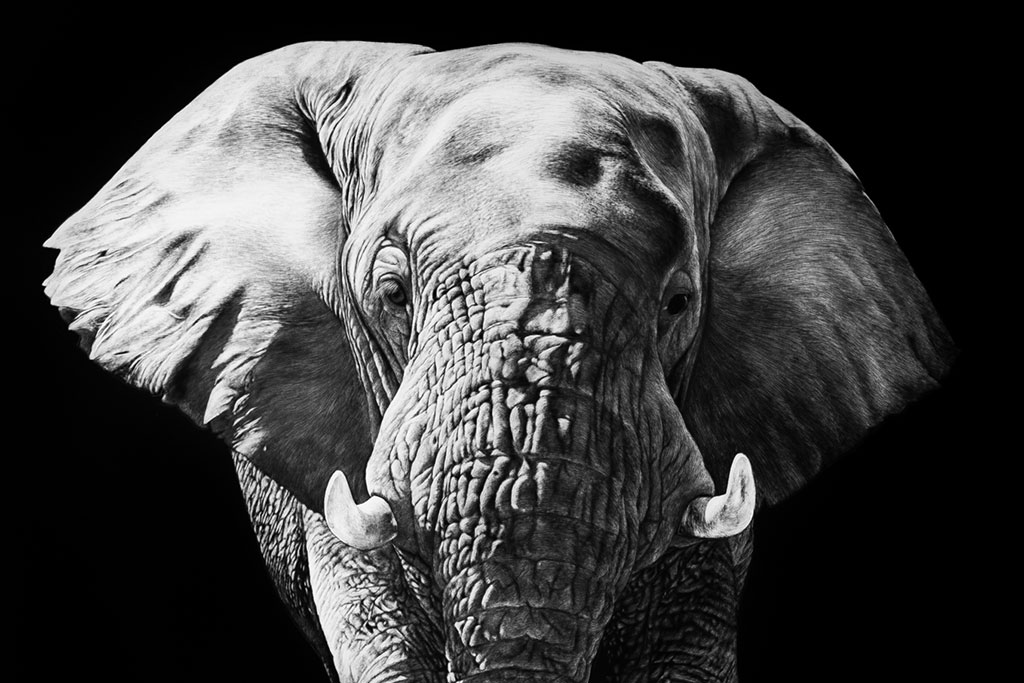 However, I was regularly looking for something different. Since I was already making graphite and charcoal drawings and oil paintings as a hobby, I started planning to do art full-time. Soon after, I discovered scratchboard, an art form where you carve images into Masonite boards composed of a smooth white clay base with a black ink overlay. Something immediately clicked: I’m a very type A person, which made the medium’s attention to detail very appealing to me. I founded Melissa Helene Fine Arts and Photography soon after in 2015.